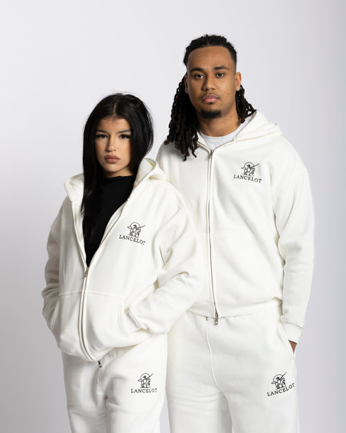 PULL À CAPUCHE ZIPPÉ BLANC - LANCELOT